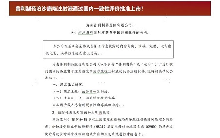 海南普利制药有限公司(以下简称“普利制药”或“公司”)于近日收到了国家药品监督管理局(以下简称“NMPA”)签发的...
