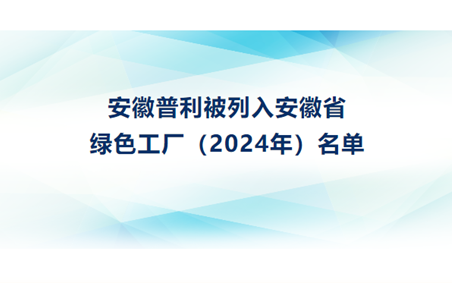 安徽普利被列入安徽省绿色工厂(2024年)名单