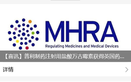 普利制药注射用盐酸万古霉素获得英国药品和健康产品管理局上市许可