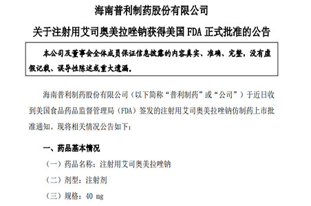 普利喜讯!注射用艾司奥美拉唑首发出口美国!